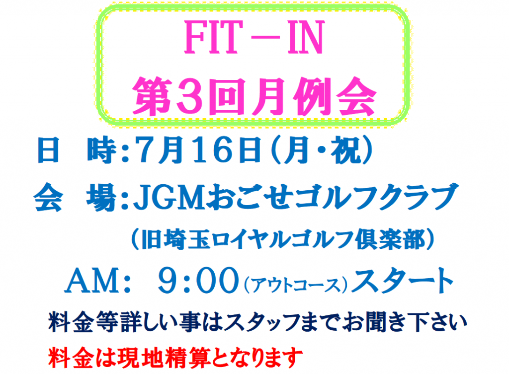 <2018年 第3回フィットイン月例会>7/16(月・祝)
