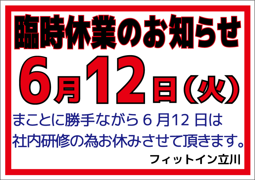 臨時休業のお知らせ <2018年6月12日(火)>