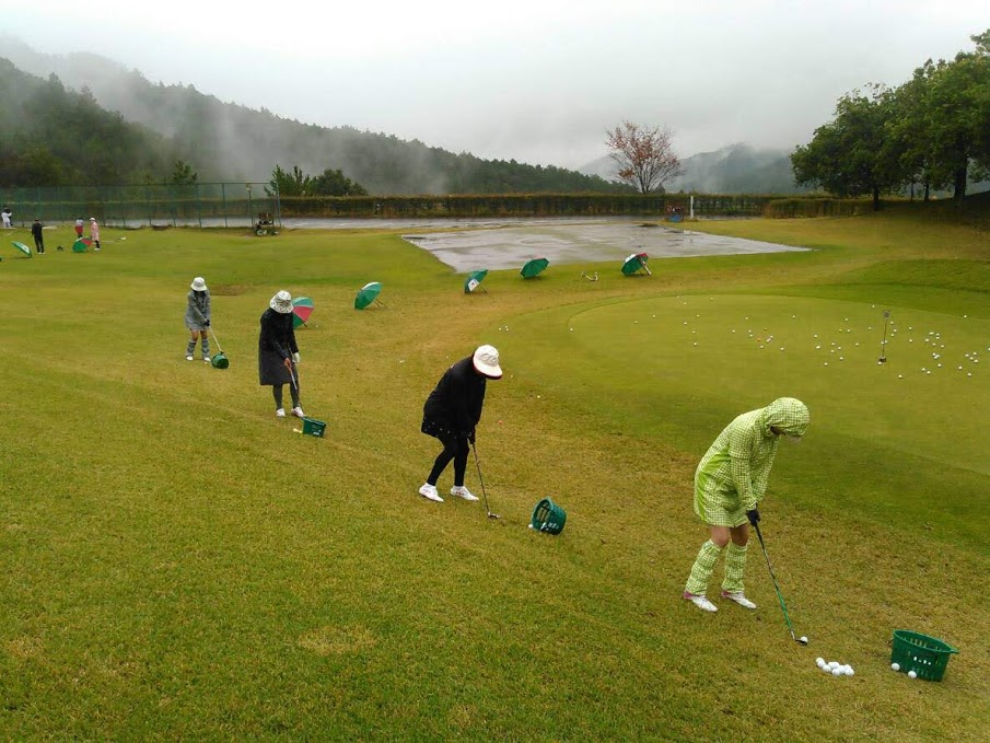 心配の雨が朝から降り、アプローチ、バンカーショット練習はかなり降っていたと思いますが、みなさんのゴルフ熱がスゴく、誰も泣き言言わず、止めるなんて言葉は皆無でした。