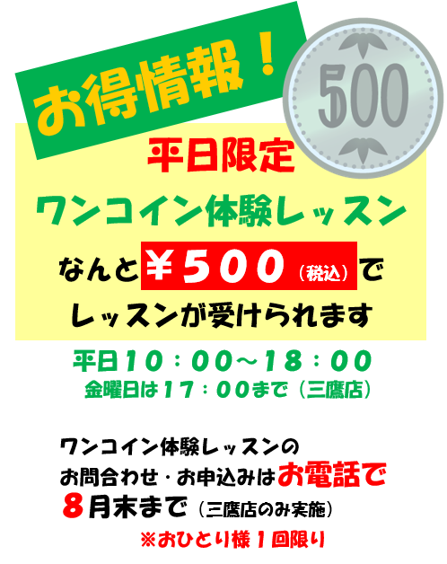 ワンコインでレッスンが受けられます!