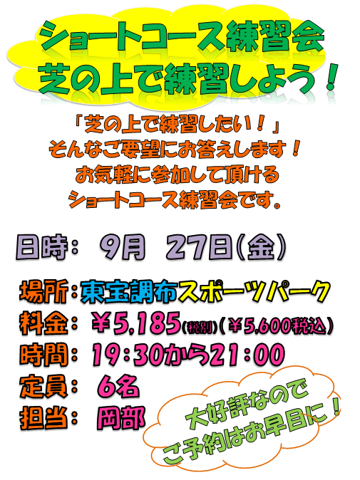ショートコースレッスン【9月27日(金)東宝調布スポーツパーク】