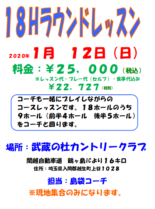 18Hコースレッスンのご案内【1月12日(日)武蔵の杜カントリークラブ