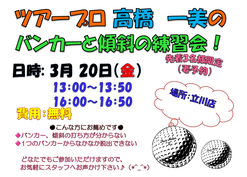 バンカーと傾斜の練習会のご案内【3月20日(金・祝)】