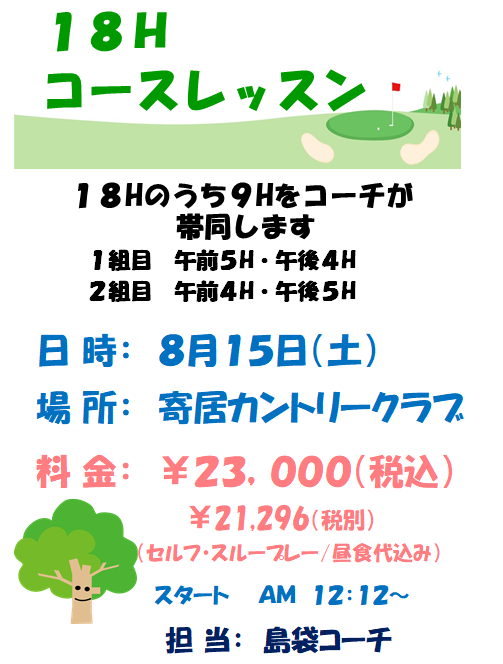 18Hコースレッスンのご案内【8月15日(土)寄居CC】