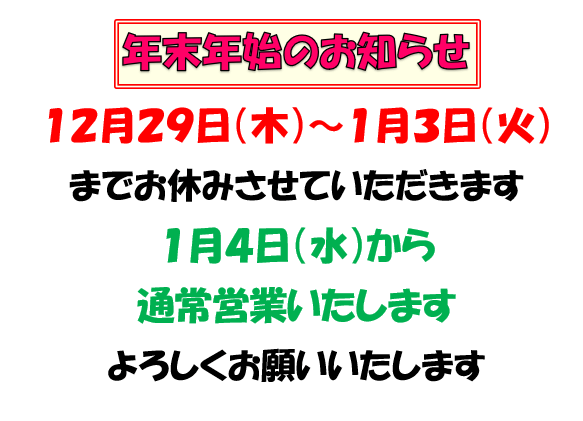 年末年始休業日のお知らせ
