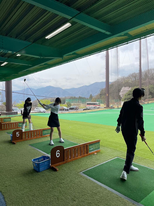 打ちっ放しでは、スイングチェックとクラブ別の飛距離を確認しました。