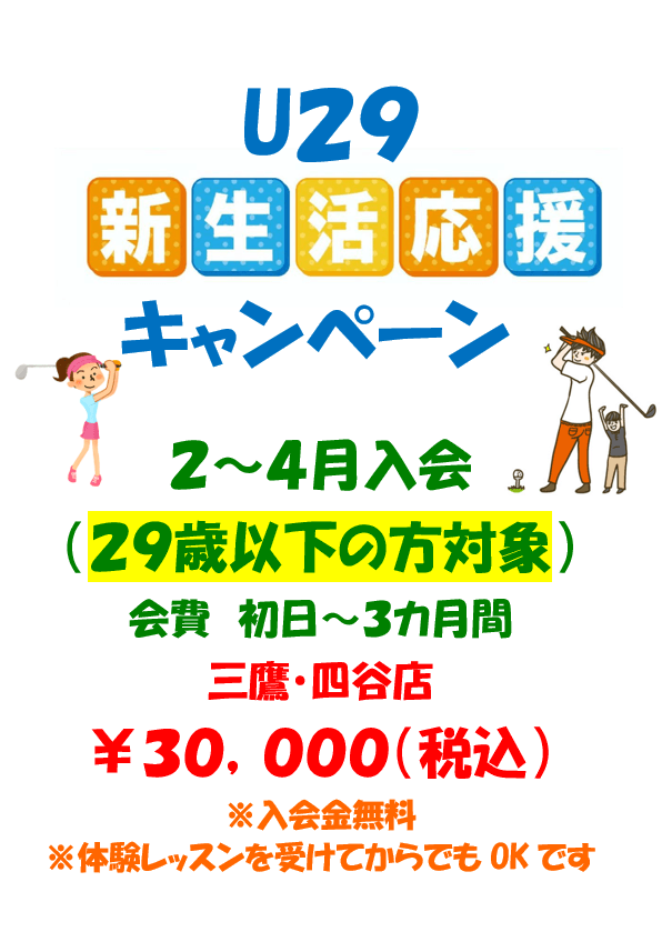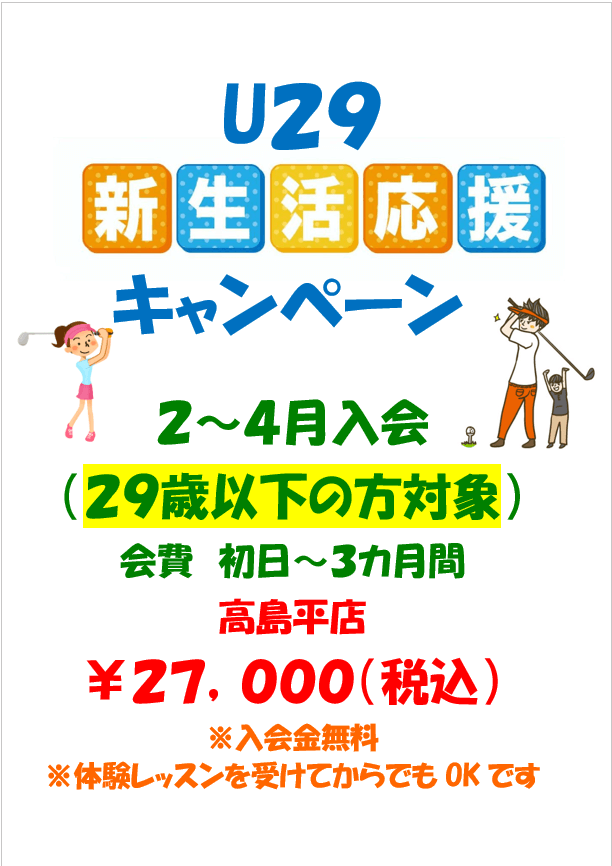 29歳以下の方対象 お得なキャンペーン(店舗によって異なります)