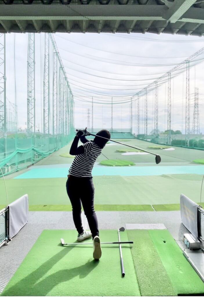 広い練習場だと、知らず知らずのうちに強く遠くへ飛ばそうと体を大きく使いがちです。