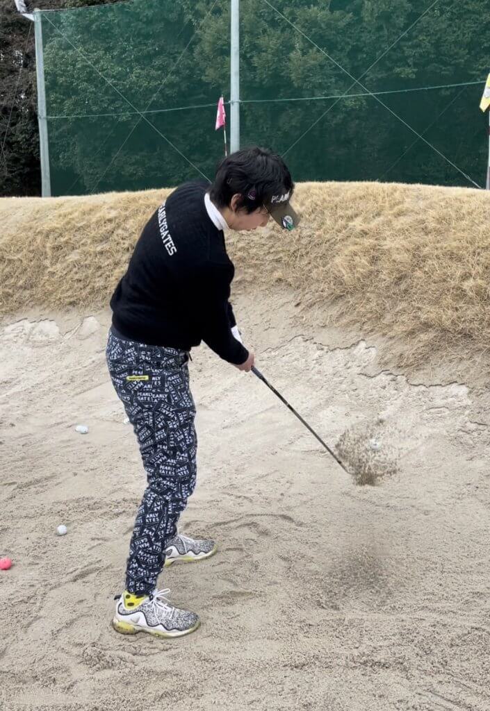 午前中はレンジで練習、芝の上からアプローチ、バンカーからの脱出など練習しました。