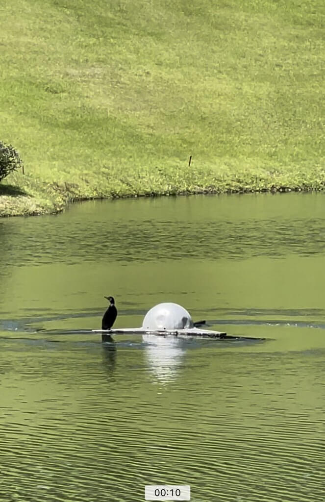 ⑦ゴルフ場の池の拡散機がクルクルと