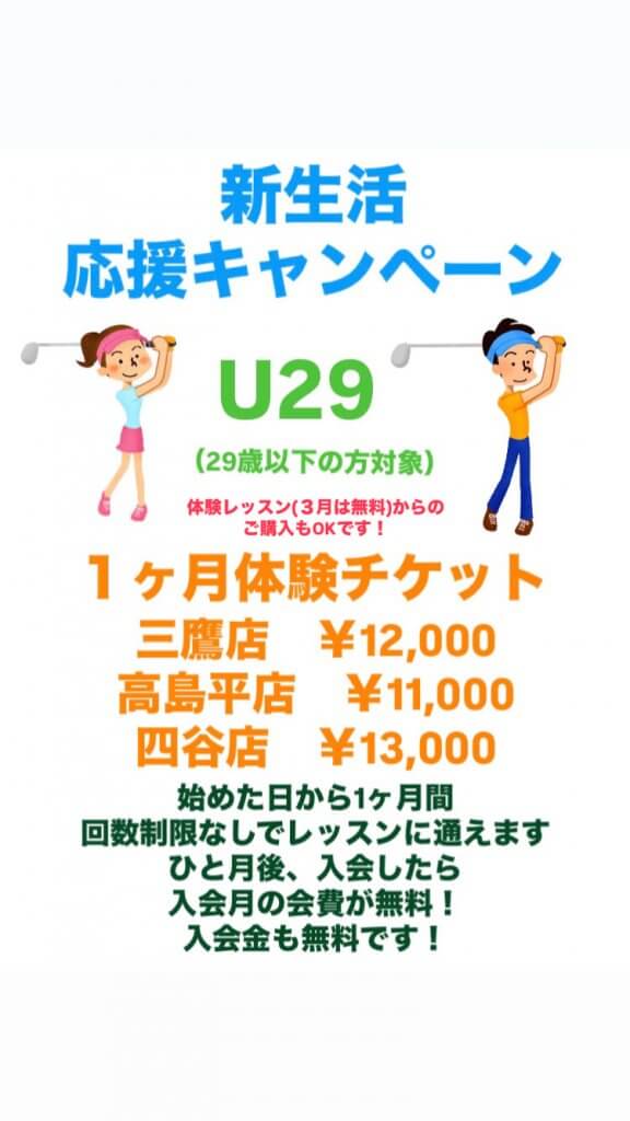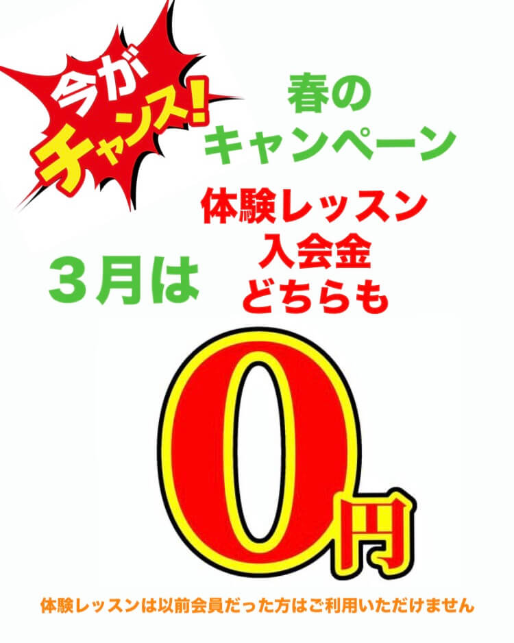 3月のキャンペーンはお得がいっぱい!(体験も入会金も無料!U29限定チケットも)