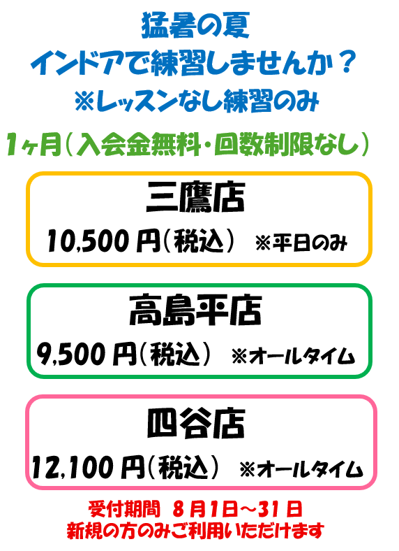 涼しい店内で練習しませんか?